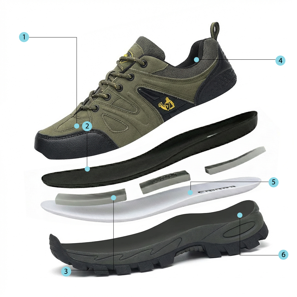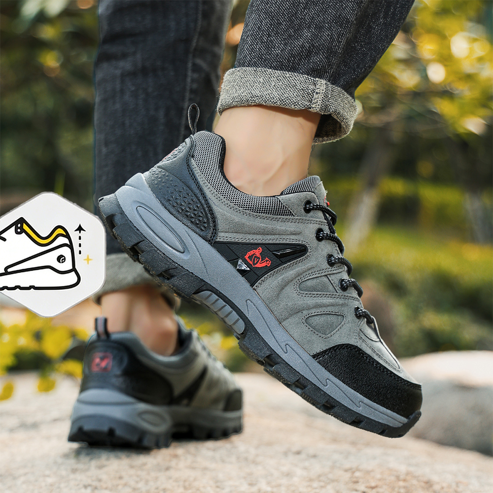 Gear up for adventure with Softsfeel's Exova Low V1 Trail Running Shoes, in eye-catching blue, slate grey, and grey. Specially designed for those with foot ailments like bunions and arthritis, these shoes feature a plush, ultra-thick padded heel collar and a wide-fit structure. Benefit from the advanced Comfort+™ technology offering tailored cushioning, alongside a pronounced heel drop and a dynamic midsole for heel strikers. Navigate any terrain with ease thanks to the sturdy Thermoplastic Rubber sole. The U-shaped insole and breathable PU-mesh upper provide dryness and toe safety, making these shoes your reliable companion for outdoor pursuits.