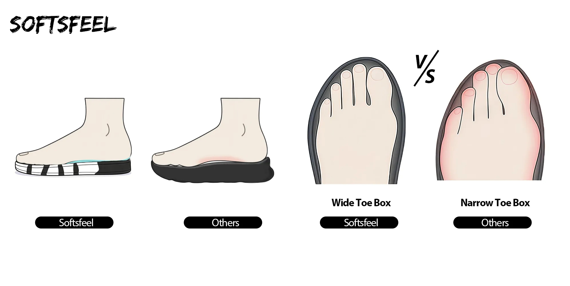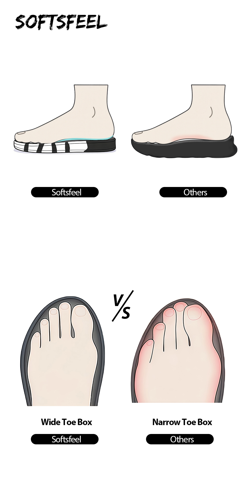 Softsfeel's Rebound Core® Shoes: guarantee 8 hours of fatigue-free walking and standing! These podiatrist-approved sneakers will put you in comfort all day long! Bid farewell to cramped toes as our extra-wide forefoot area boosts blood circulation. Even when fatigue sets in, our innovative heel ring maintains consistent gait posture, keeping you steady on your feet.