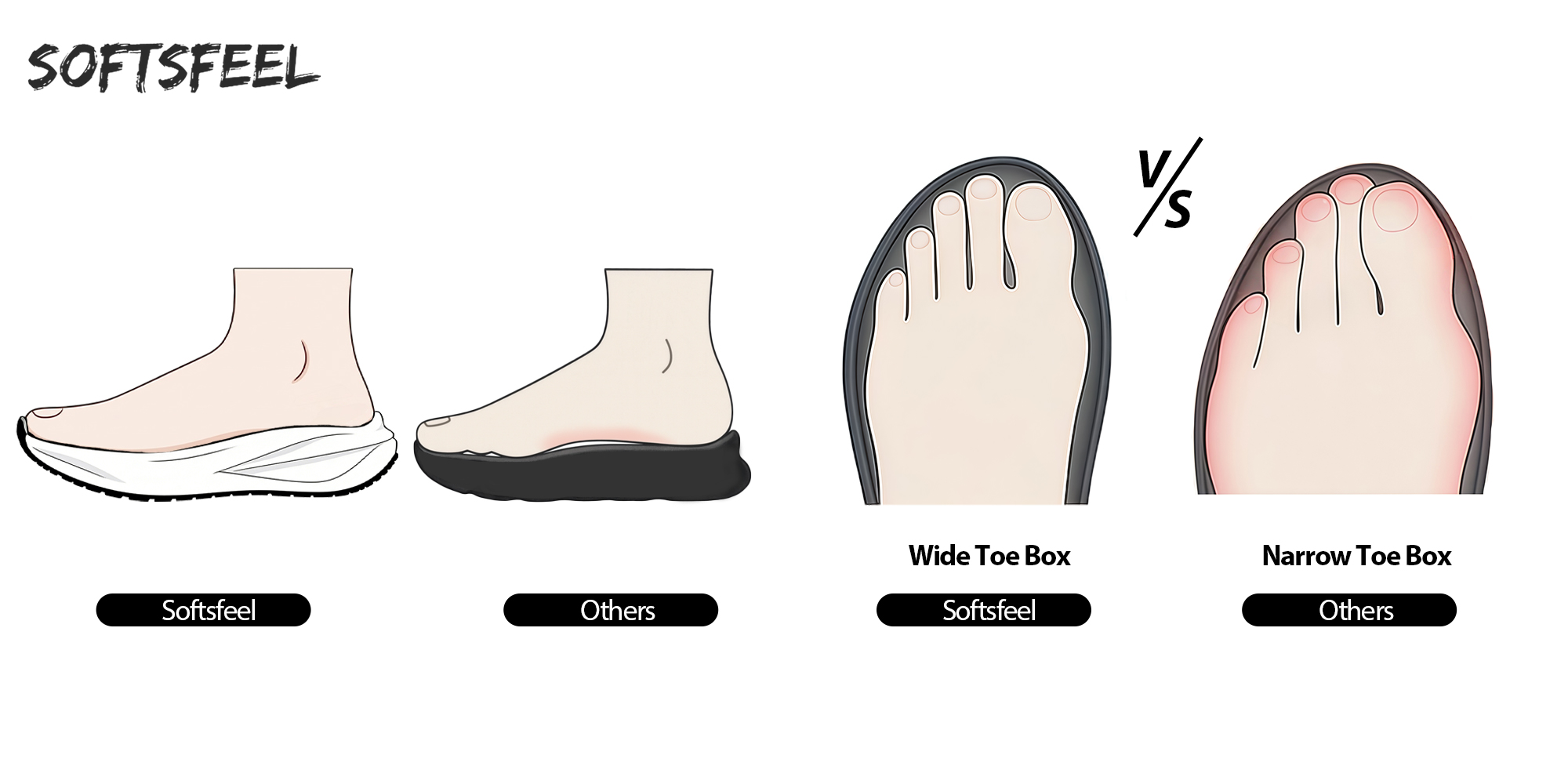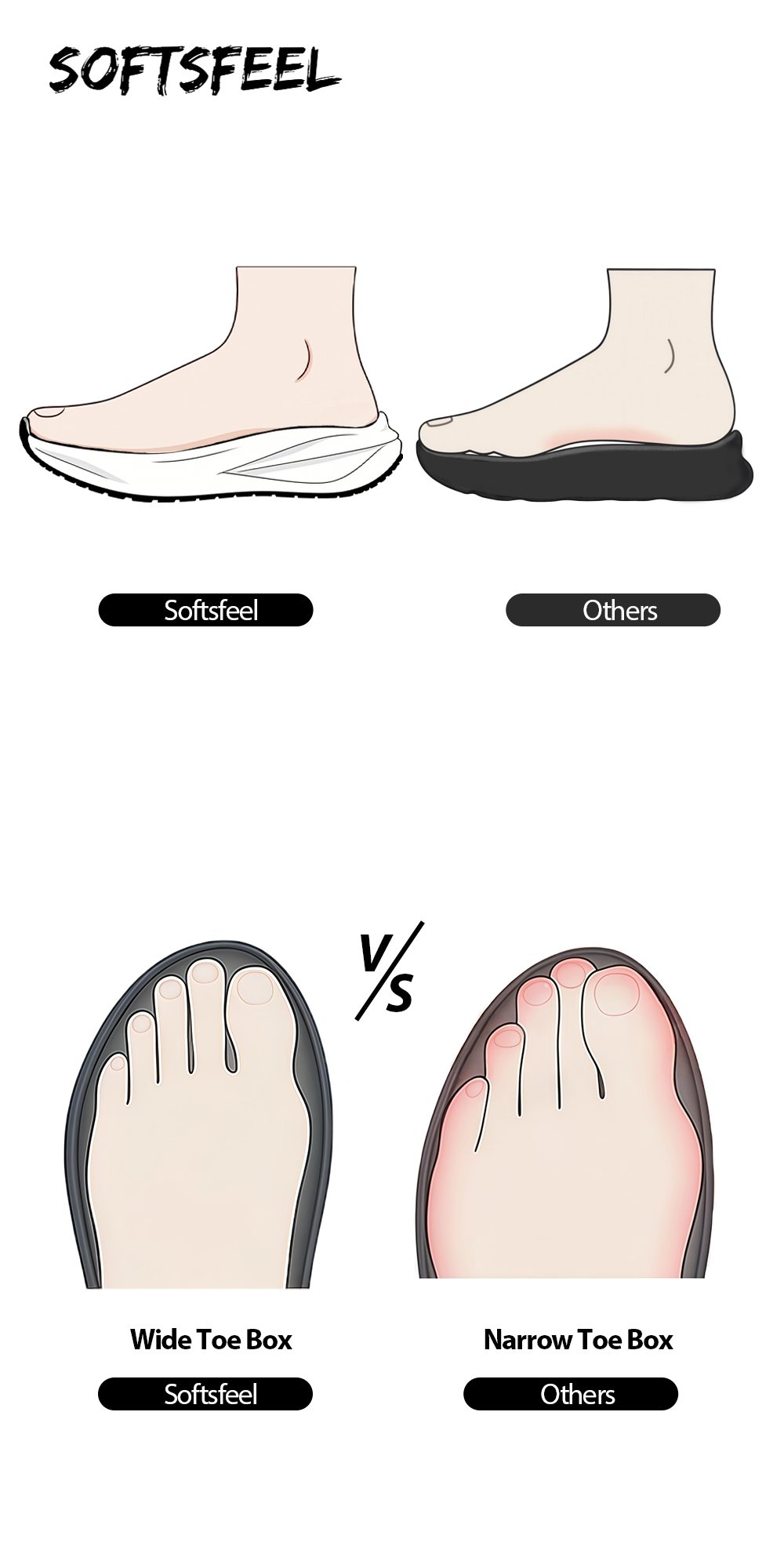 - Wide-Foot Friendly: Spacious toe box protects sensitive toes; say goodbye to cramped feet.
